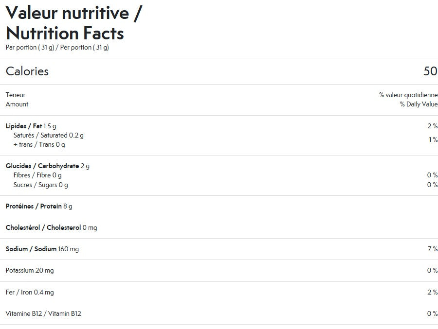 Water, wheat protein, tofu (water, soybeans, magnesium chloride and/or calcium chloride), wheat starch, salt, cider vinegar, onion powder, garlic powder, yeast extract, inactive yeast, natural flavour, natural colouring. Contains : wheat gluten, soy.