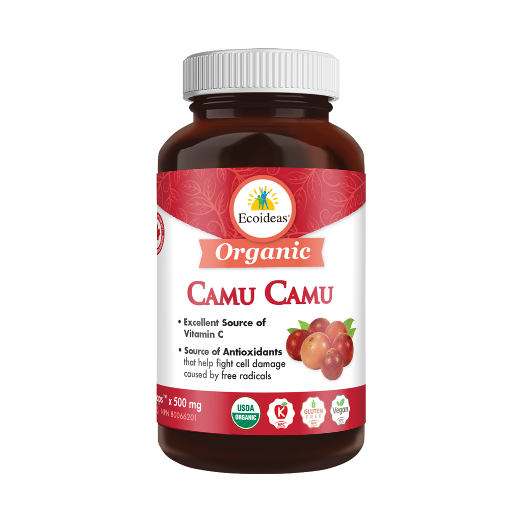 Organic, Raw, Whole Camu Camu Fruit Powder. (Myrciaria dubia). Origin: Peru Non-Medicinal Ingredients: Organicap (Pullulan, Seaweed, Water).