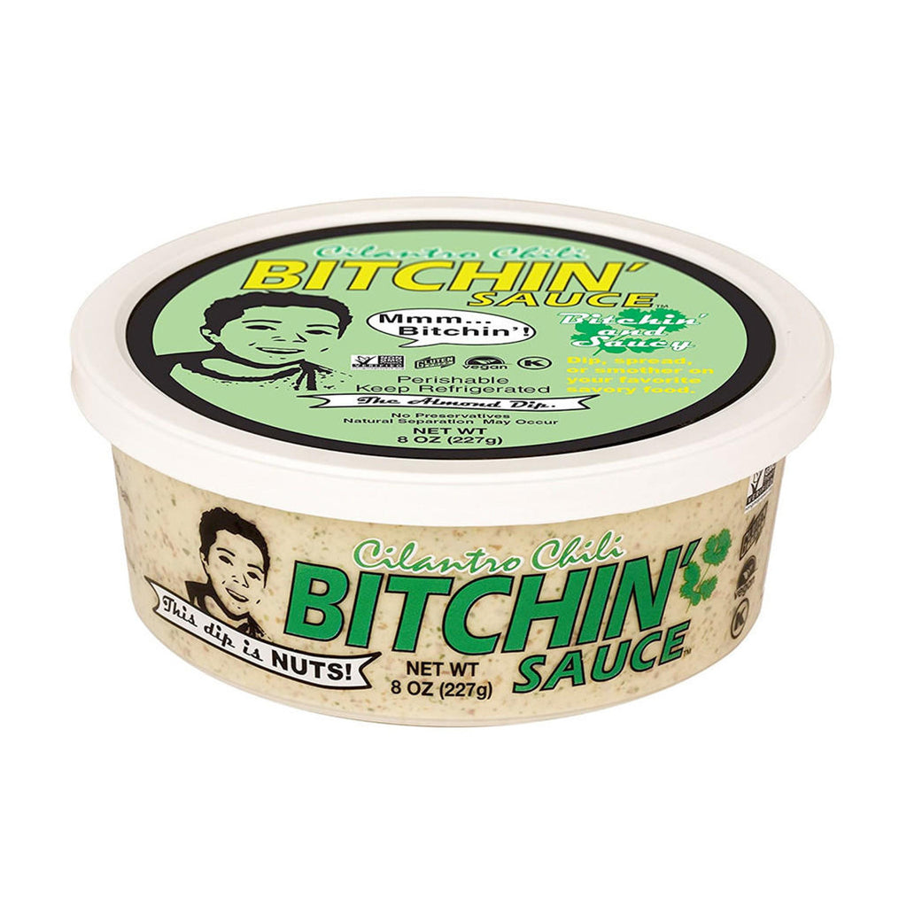 Water, grapeseed oil, almonds, lemon juice, soy sauce (water, soybeans, salt), cilantro, yeast, garlic, cumin, cayenne, sea salt, jalapeño.