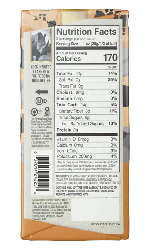 Rich, dark and decadent, this chocolate bar brings you the very best of real cacao flavor, combined with small batch toffee made from premium hazelnuts. Go ahead—treat yourself.