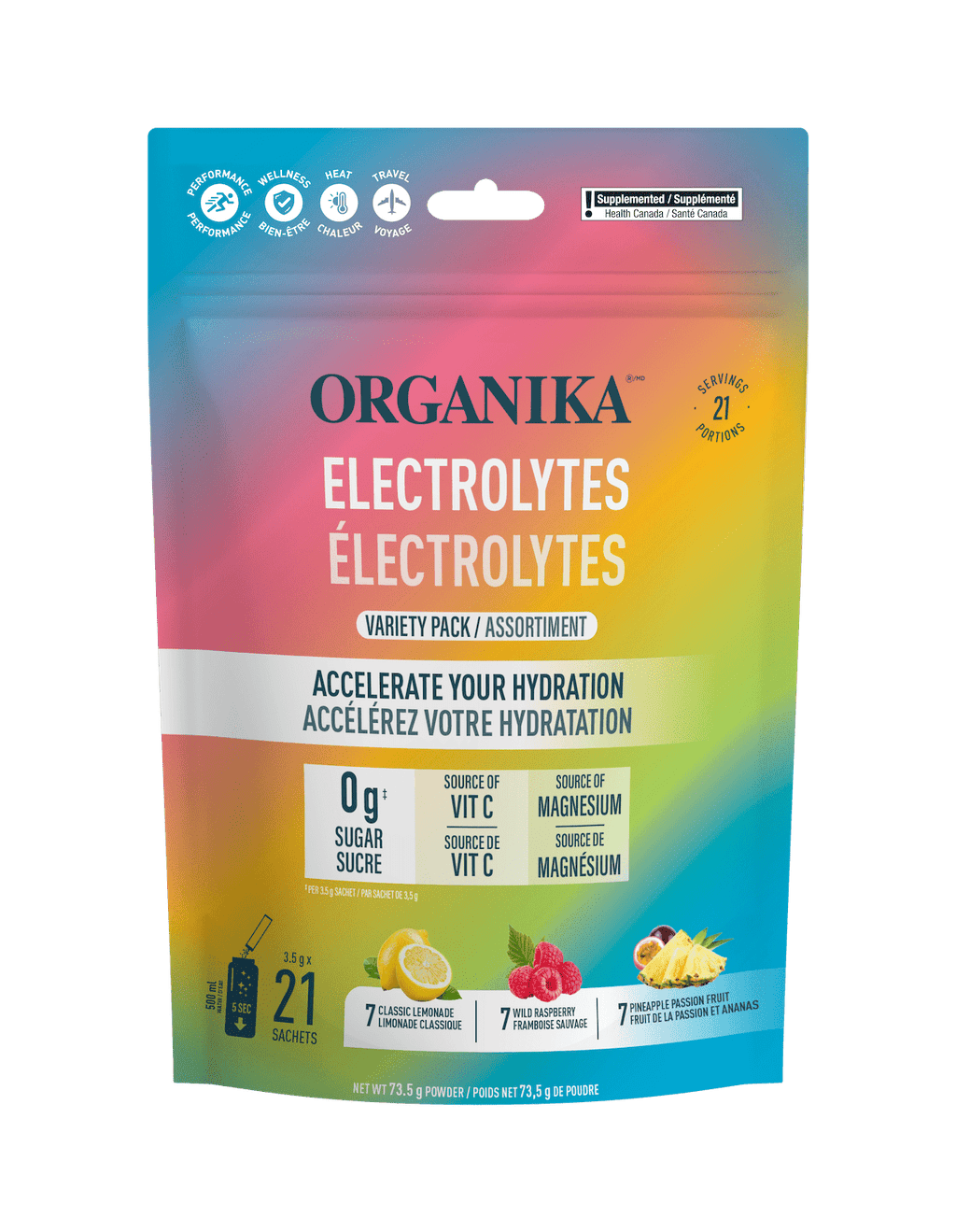 Wild raspberry: citric acid, natural raspberry flavour, prebiotic fibersol® soluble vegetable fibre, magnesium citrate, potassium citrate, tricalcium phosphate, ascorbic acid, concentrated beet root (for colour), stevia extract, sodium chloride, concentrated carrot (for colour).