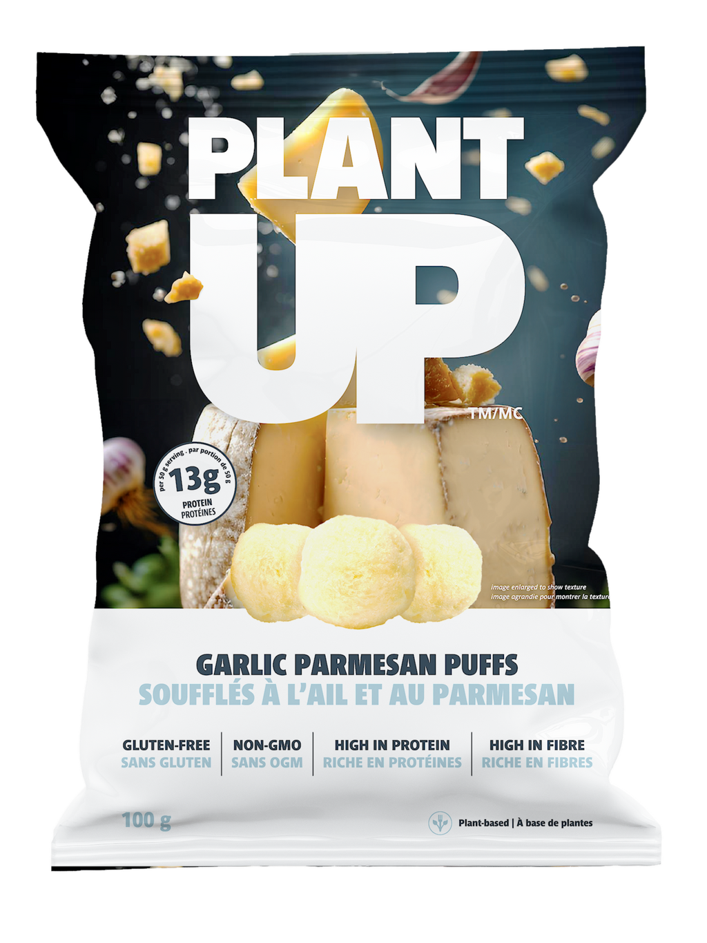 Fava flour, pea fibre, parmesan type seasoning (maltodextrin, salt, garlic powder, onion powder, cane sugar, natural flavour, yeast extract, lactic acid [calcium lactate]), sunflower oil, green tea extract.