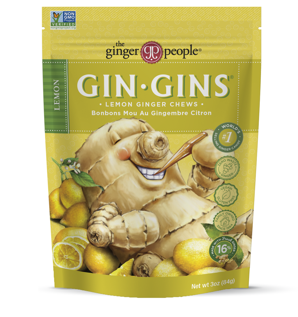 Lemon GIN GINS® Ginger Chews blend 16% fresh ginger with tangy lemon zest for a refreshing, revitalizing treat. Perfect for soothing stomachs or satisfying a sweet tooth in a better-for-you way, they’re a portable pick-me-up, travel buddy and go-to remedy, wrapped in a delightful chew that’s as functional as it is delicious.