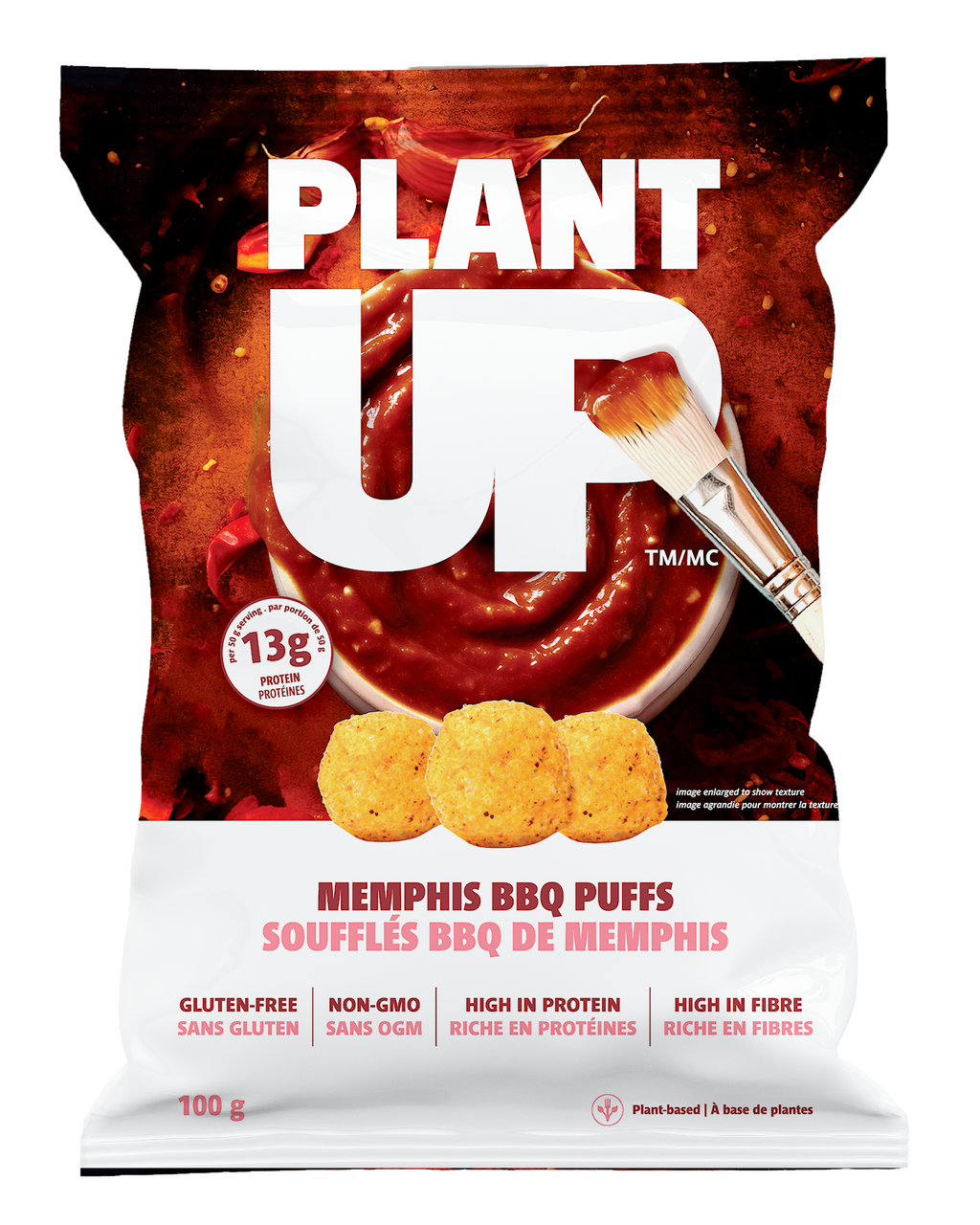 Fava flour, pea fibre, bbq seasoning (sugars [cane sugar, brown sugar], salt, tomato powder, yeast extract, mustard, spice, garlic powder, onion powder, tapioca maltodextrin, malic acid, smoke flavour, white distilled vinegar, natural flavour), sunflower oil, green tea extract.