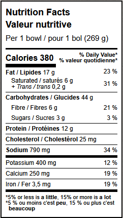 Filtered water, organic corn, organic corn masa (organic stoneground corn, trace of lime), organic black beans, monterey jack cheese (pasteurised milk, bacterial culture, salt, microbial enzyme [without animal enzymes or rennet]), olives, expeller pressed safflower and/or sunflower oil, organic tomato purée, organic onions, organic sweet rice flour, spices, sea salt, organic garlic, organic cilantro.