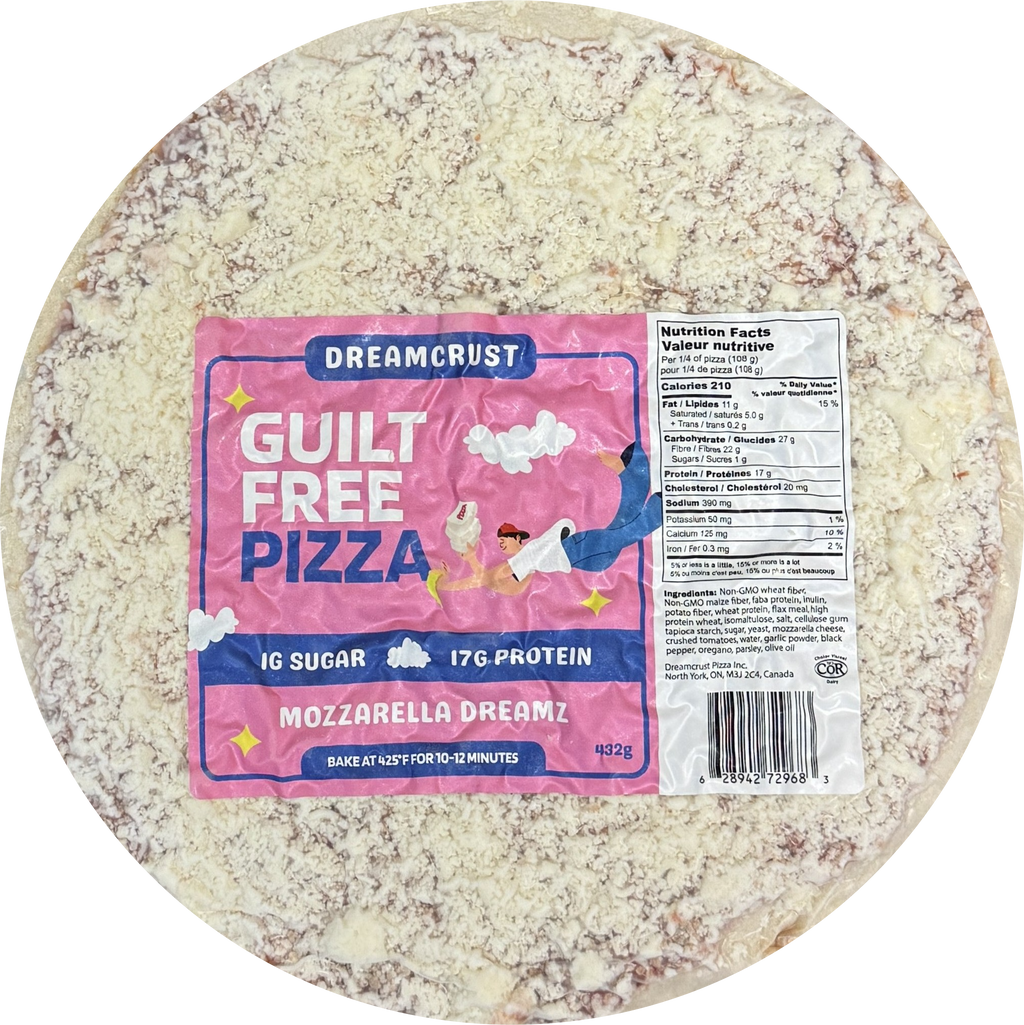 A dreamworthy, 11-inch, guilt-free pizza with 17 grams of protein, 22 grams of fibre, and 5 grams of net carbs.