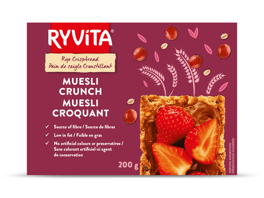 Ryvita MUESLI CRUNCH combines rye with pumpkin and sunflower seeds, oats and currants.
