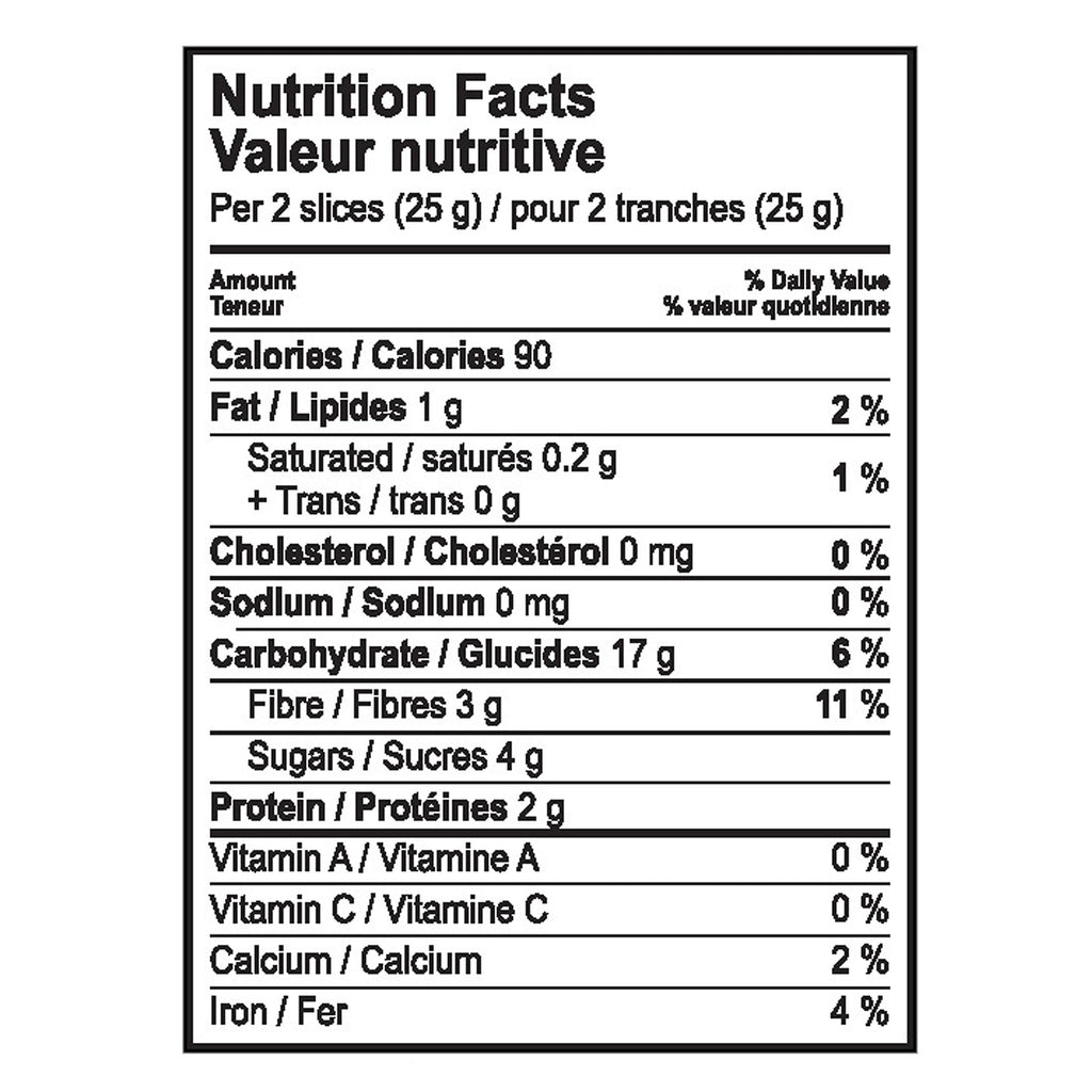 Whole grain rye flour, Currants, Seeds (sunflower seeds, pumpkin seeds), Sugars (cane sugar, honey), whole grain wheat flour, Whole grain oat flakes, Whole grain kibbled rye.