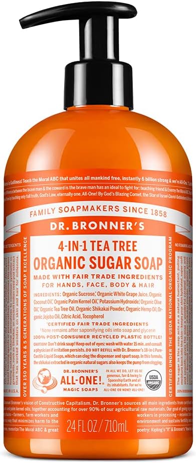 Organic Sucrose*, Organic White Grape Juice, Organic Coconut Oil*, Organic Palm Kernel Oil*, Potassium Hydroxide**, Organic Olive Oil*, Organic Tea Tree Oil, Organic Shikakai Powder, Organic Hemp Seed Oil, Organic Jojoba Oil, Citric Acid, Tocopherol.