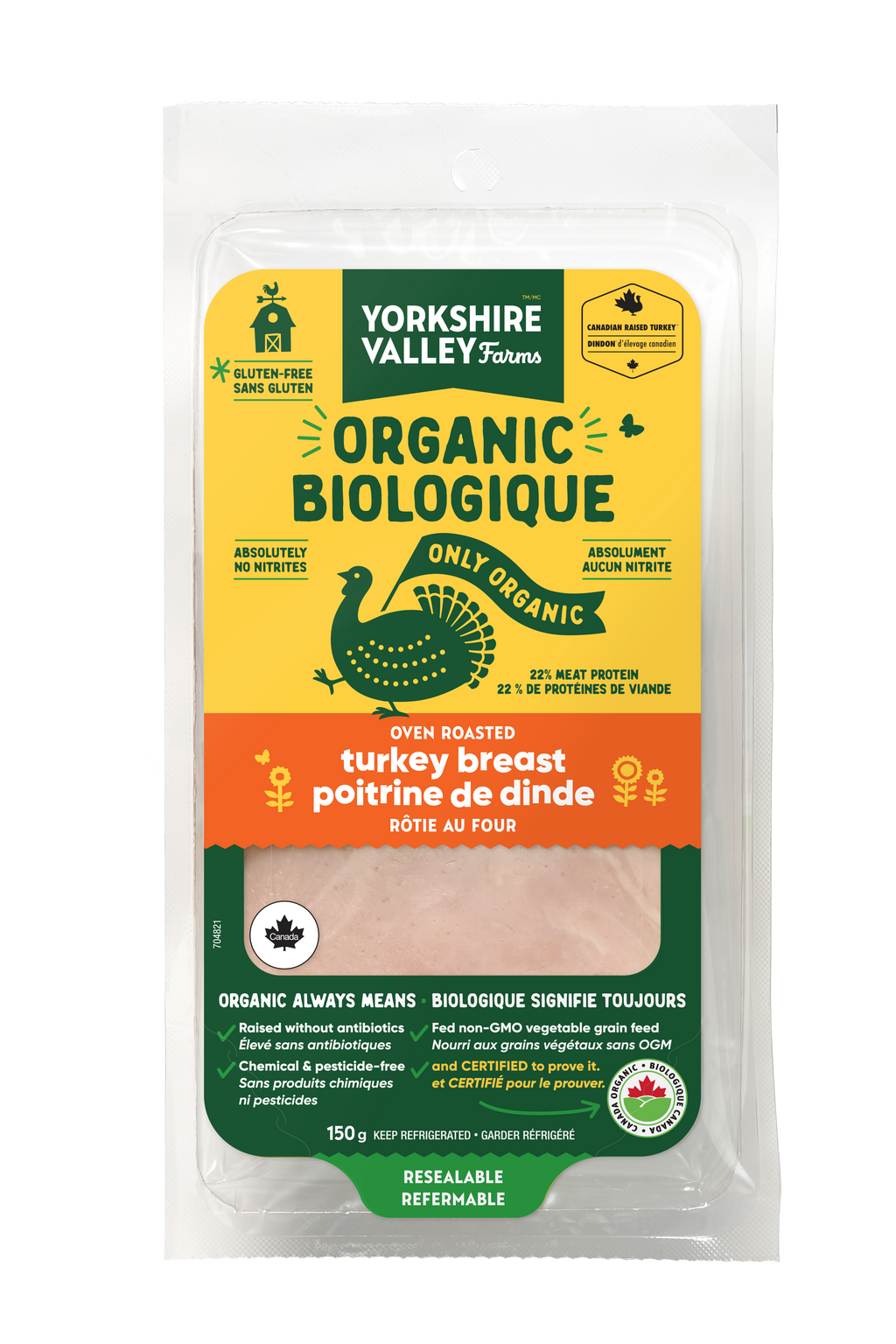 Bored with lunch? It’s time to drop the mundane lunch routine cold turkey. We’ve got some very exciting news for your sandwich game – Yorkshire Valley Farms organic oven roasted turkey breast deli slices are now available, and they’re delicious (if we do say so ourselves). Our deli slices are made with our organic turkey breast, which means that like all of our turkey products, the animals have been raised without antibiotics on a non-GMO all grain diet. And, our deli meats contain absolutely no nitrites, so you can feel good about serving them to the whole family.