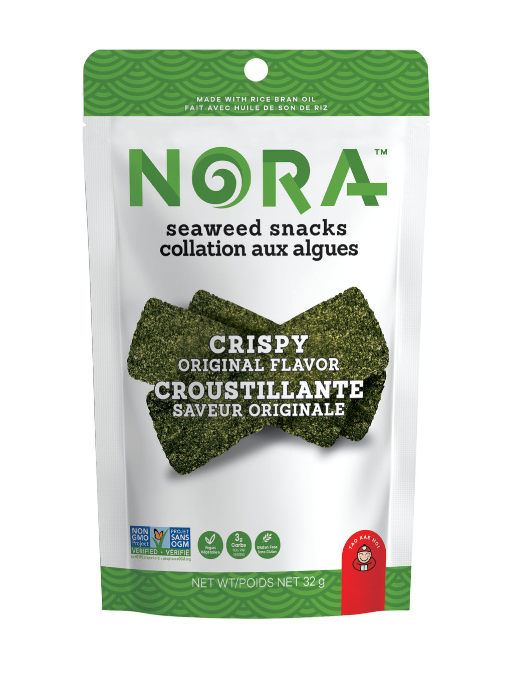 Delicate but satisfying, Nora Crispy Seaweed will send your tongue spinning. Crispy and crunchy like a potato chip, yet low-carb and gluten-free, Original Crispy Seaweed is the ultimate guilt-free snack with just 3g carbs per serving!