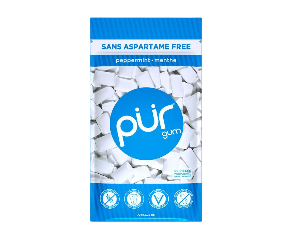 Xylitol, gum base, gum Arabic, natural flavors, glycerol, carnauba wax, tocopherols.