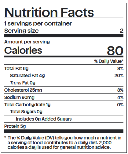 Goat cheese (pasteurized goat’s milk, sea salt, bacterial culture, microbial enzyme), Roasted garlic, and herbs.